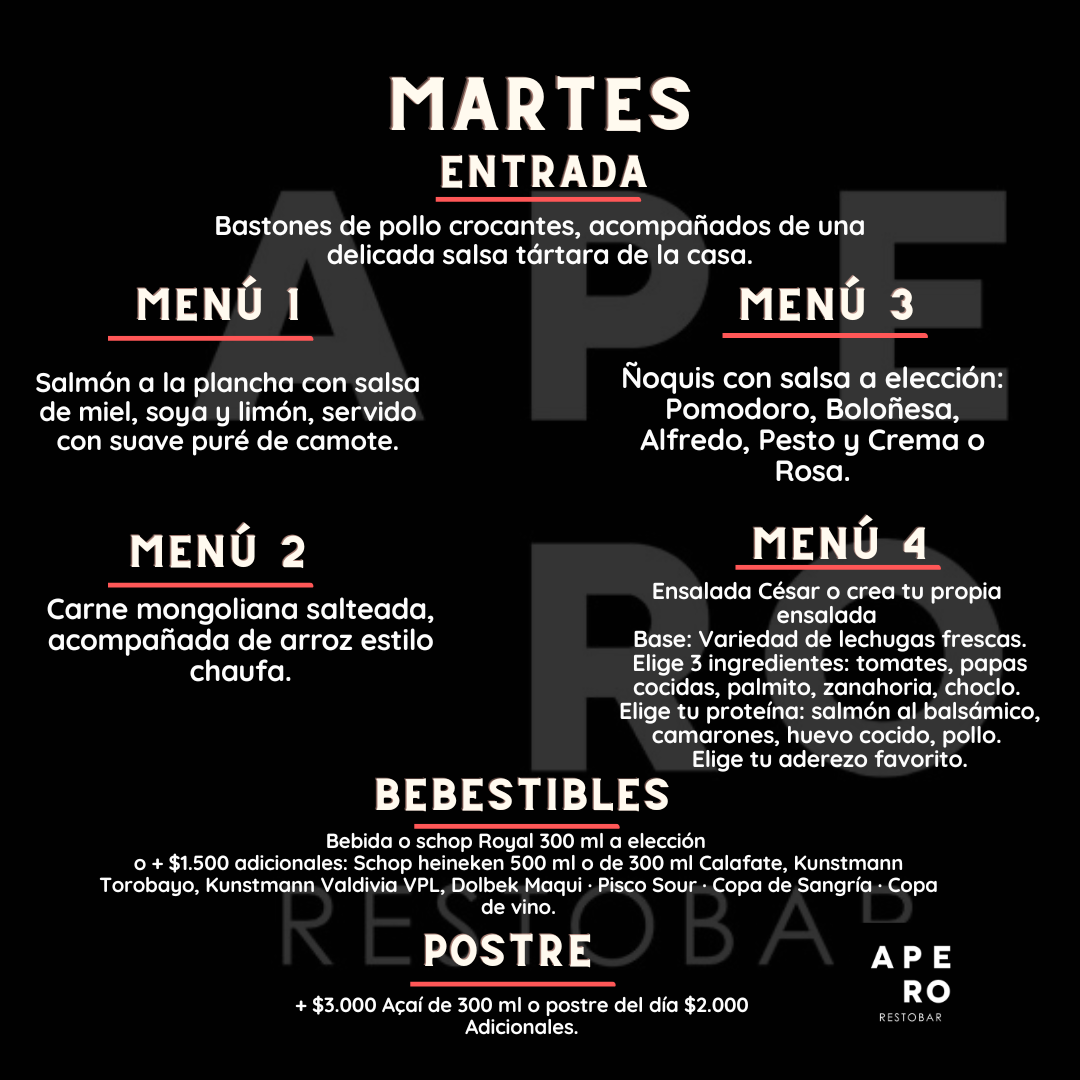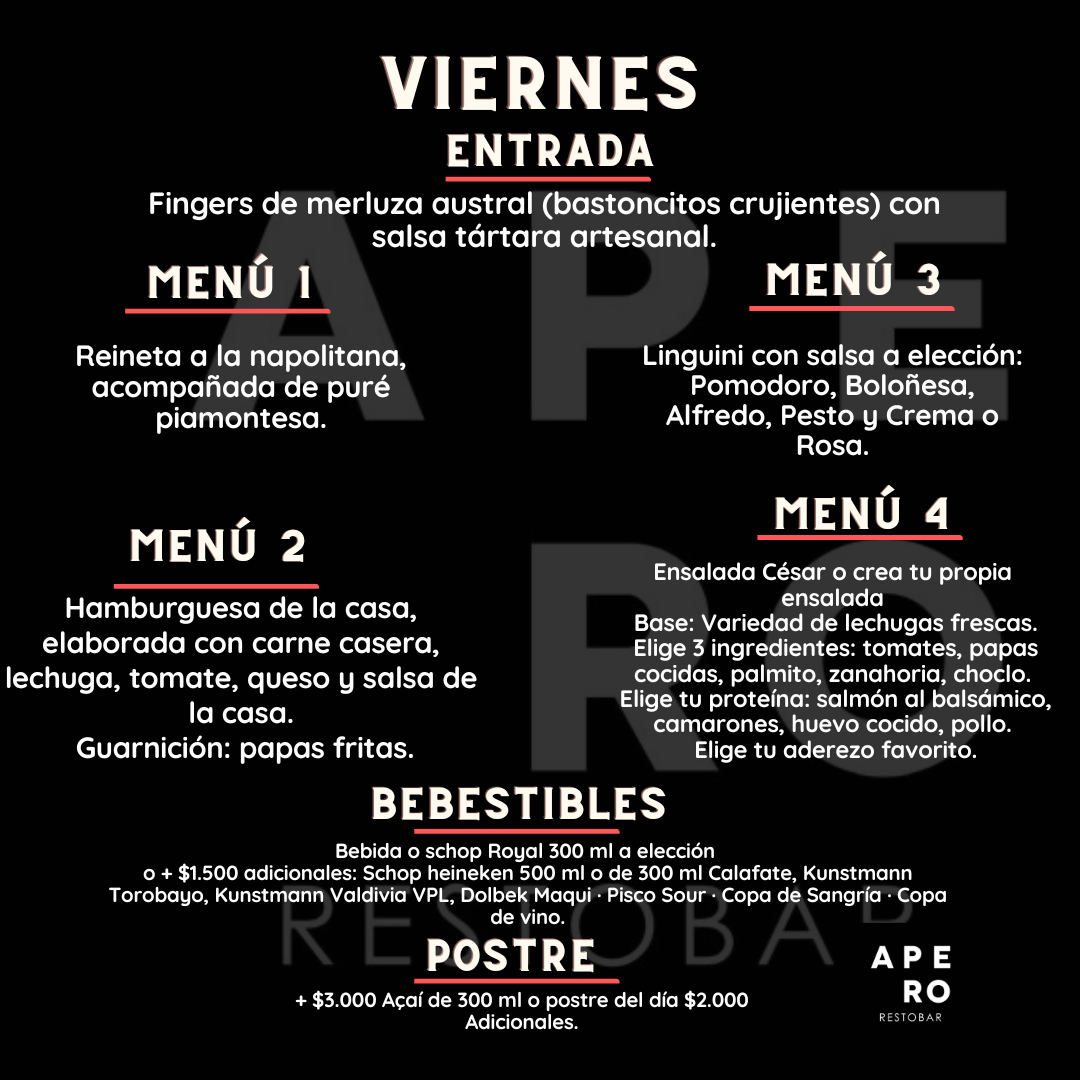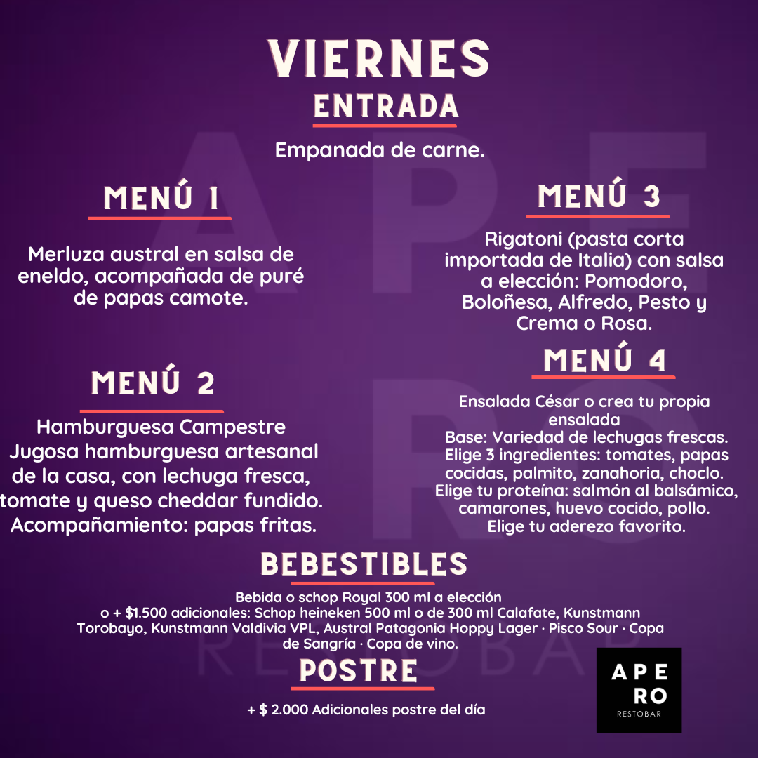 MENĂ ALMUERZO LUN-VIER 12:30 A 15:30